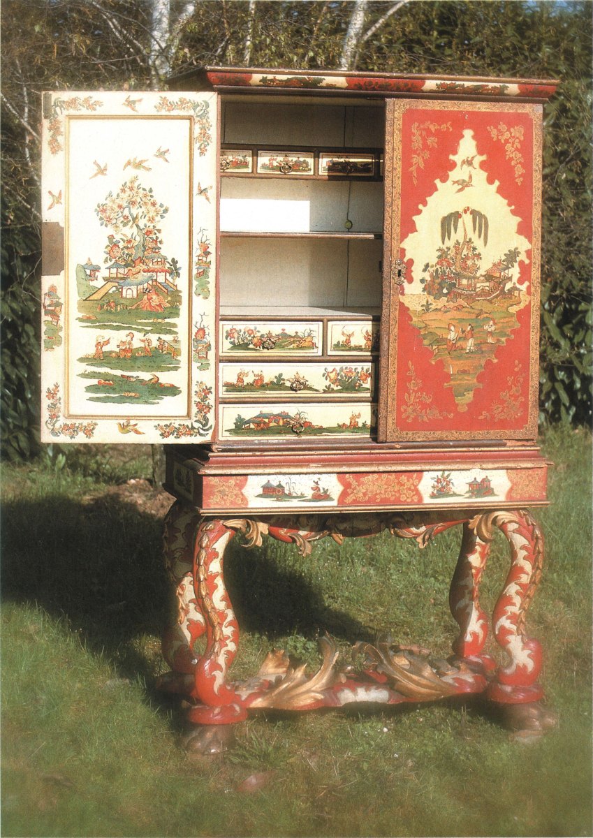 Durant la seconde guerre mondiale, cette propriété fut occupée par le maréchal G6ring, qui exposa ce meuble dans le grand salon du château, où il fit main basse sur son contenu de jades et de porcelaines en 1943. Ce cabinet ornait le salon de cette propriété, à côté du secrétaire dit « Mazarin» type ministre adjugé lors de la vente à Cheverny le 11 juin 1989 sous le n° 125.