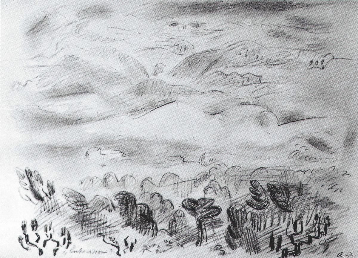 André MASSON (1896-1987). Entrevision (1949). Dessin au crayon et estompe. Monogrammé en bas à droite et titré en bas à gauche au crayon par A. Masson.