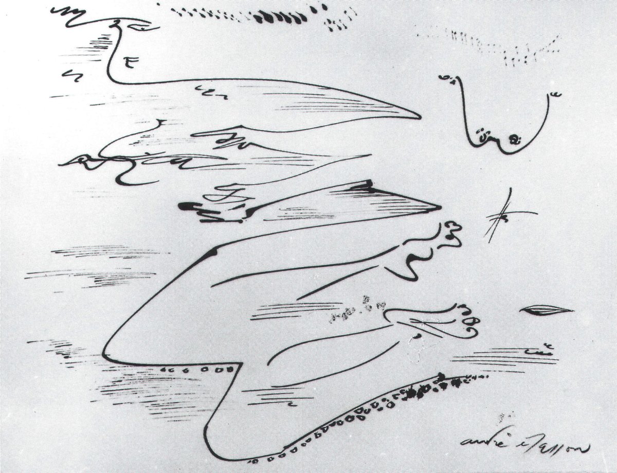 André MASSON (1896-1987). Féminaire à l'oiseau en vol (1956). Dessin à l'encre de Chine, signé au crayon en bas à droite.
