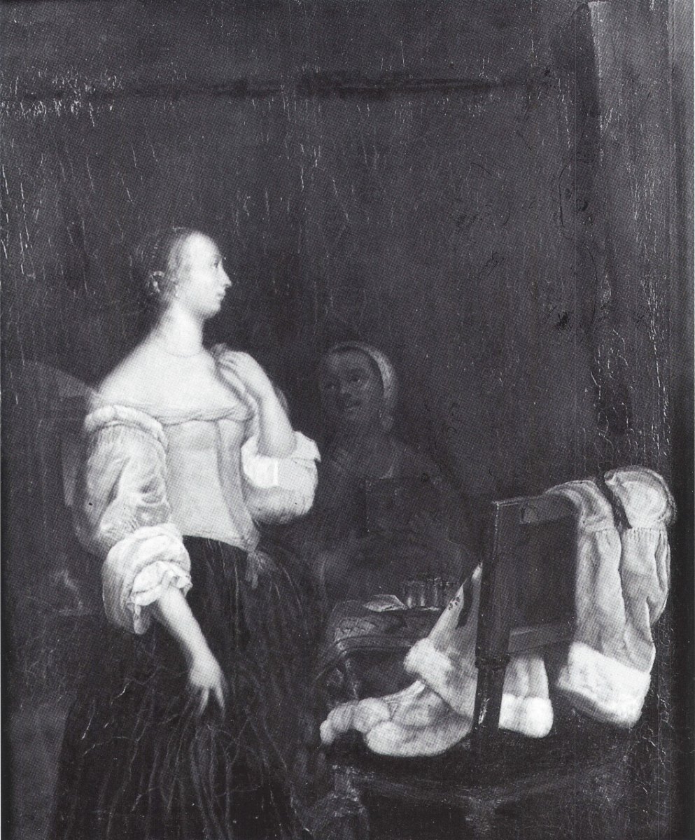 ECOLE FLAMANDE DU XVIIème siècle. Femmes aux coffrets. Huile sur panneau. Riche encadrement doré Louis XIV.