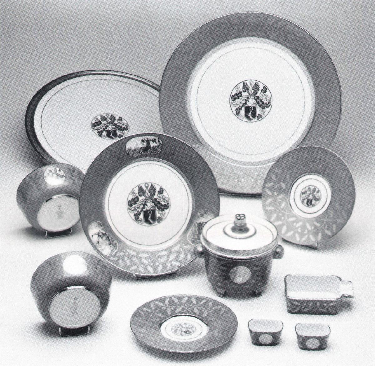 Pendant la seconde guerre mondiale, Sèvres continua de travailler. Outre les fournitures demandées par les services du maréchal Pétain, la Manufacture dut également accepter les commandes des troupes d'occupation... De même le maréchal Goering passa-t-il commande d'un service de table complet dont toutes les formes nouvelles furent conçues en Allemagne, de même que les décors à sujets de chasses, et qui semble n'avoir été livré qu'avec la plus extrême lenteur.