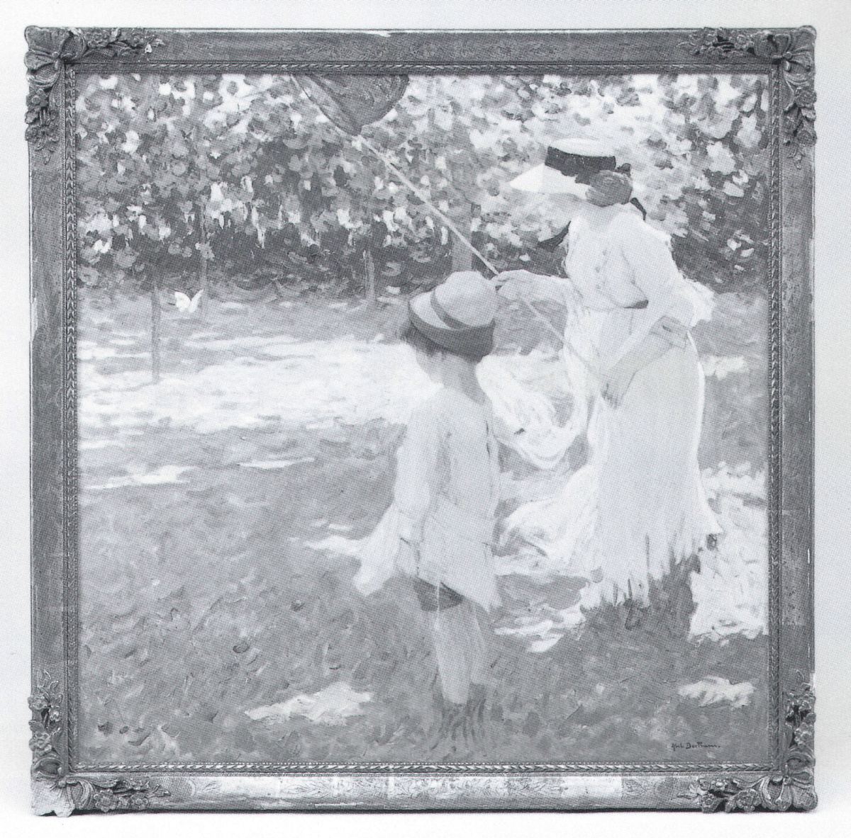 BERTRAM Abel (1871-1954). La chasse aux papillons. Huile sur toile, signée en bas à droite.