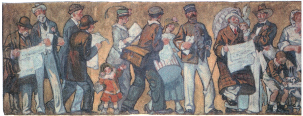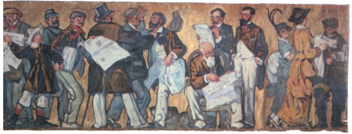 FARGEOT Ferdinand (né en 1880). La Presse. Huile sur toile, signée en haut à droite.