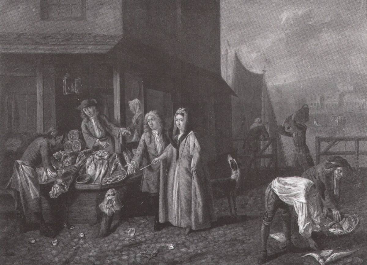 Josef van AKEN (Anvers 1709 - Londres 1749). «Le marché aux poissons ». Cuivre.