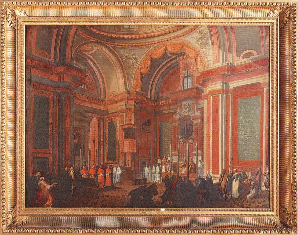 Sur nos toiles, figurent les armoiries du pape CLÉMENT XIII, et de la famille de CHIGI.