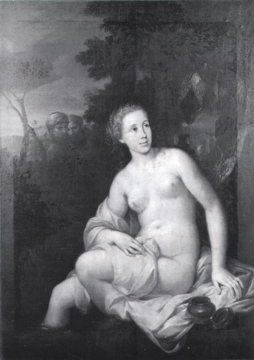 École FRANÇAISE vers 1700. Suzanne et les vieillards. Toile.