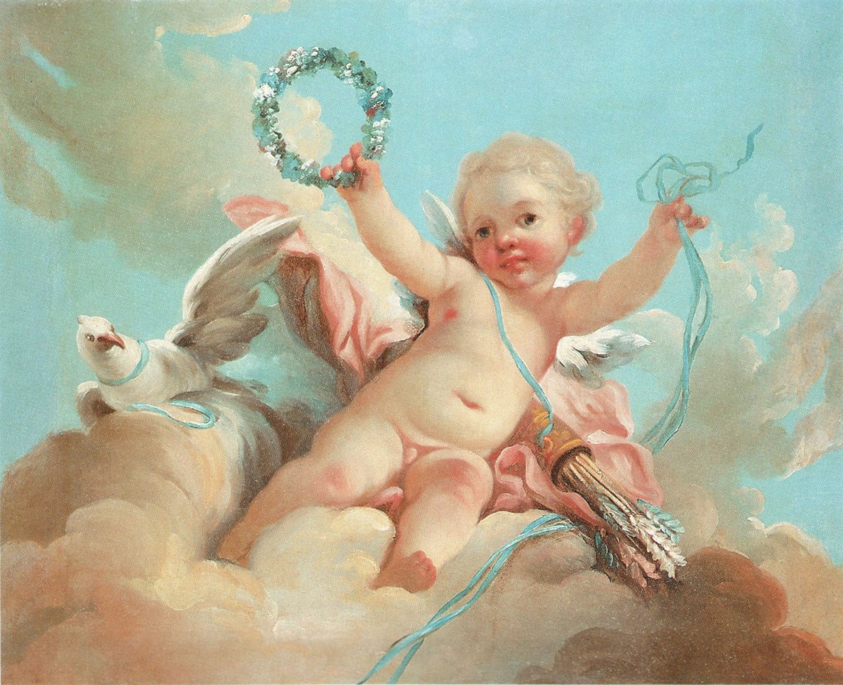 Patrice Marandel a attribué nos deux tableaux à Fragonard: ils auraient été exécutés pour la décoration d'un hôtel parisien vers 1770. L'Amour vainqueur peut en particulier être comparé à un autre putto, dans une position similaire, figurant sur un panneau du salon du graveur Gilles Demarteau (Paris, Musée Carnavalet).