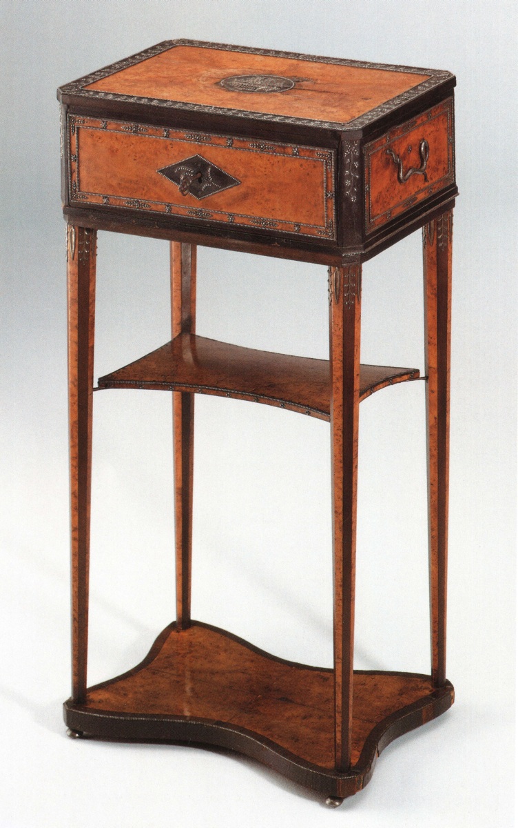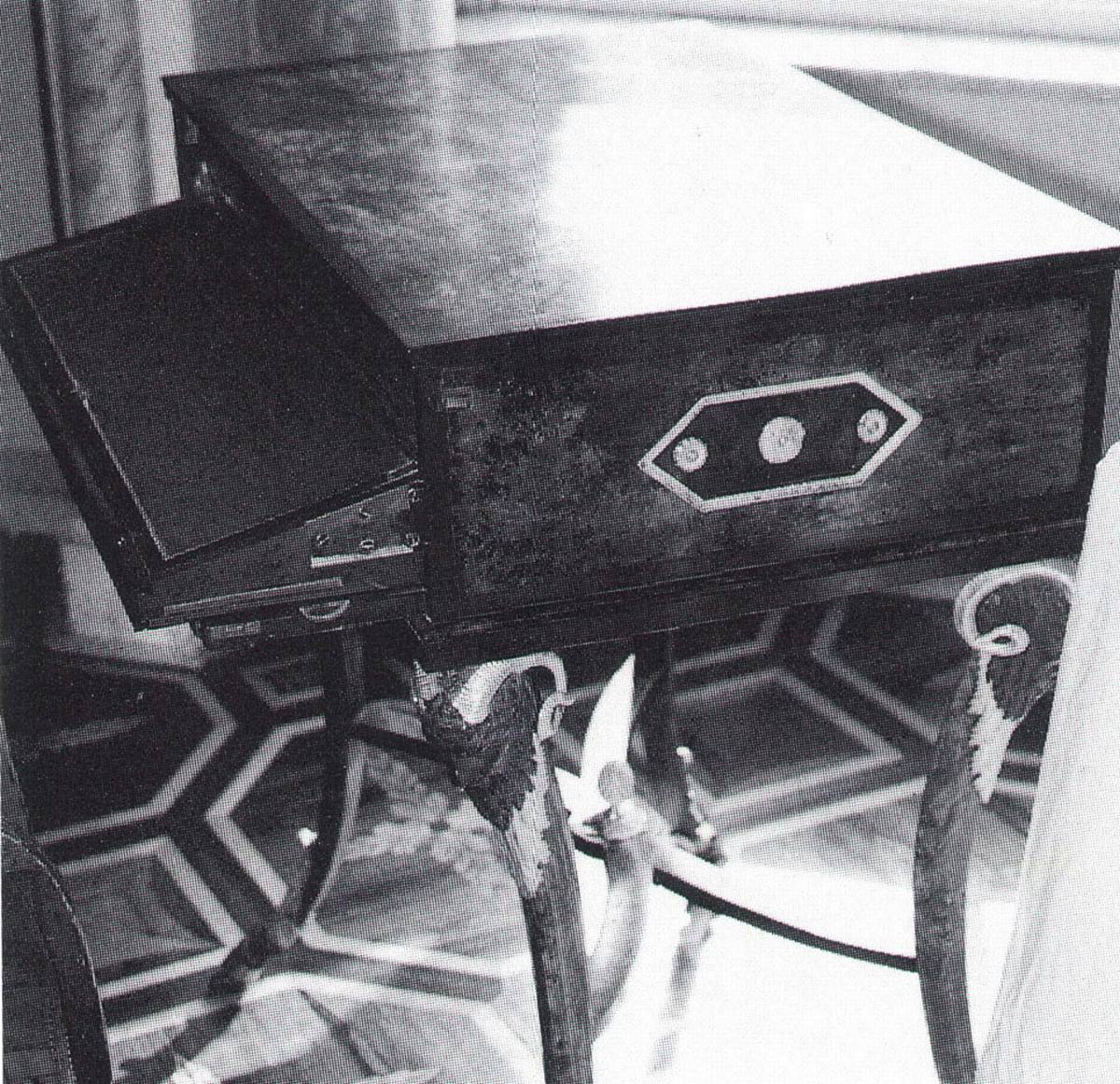 Provenance: la Malmaison, d'après la tradition familiale. Ce meuble appartient aux descendants d'Idatte, concierge de Malmaison sous l'Empire. Charles Idatte occupa ces fonctions de 1802 à 1828, jusqu'à la vente de Malmaison au banquier Hagerman ; il pourvoyait aux menues dépenses et veillait au bon entretien du domaine, tandis que sa femme, Maris Idatte, d'origine anglaise, était lingère au château; leurs gages annuels s'élevaient à l 200 F pour chacun. De cette même famille, provenaient: une flûte au chiffre de Joséphine, acquise par le ministre de la Culture lors d'une vente publique à Orléans en 1981 pour la Malmaison; et un sabre d'honneur de Boutet vendu à Vendôme en 1985.