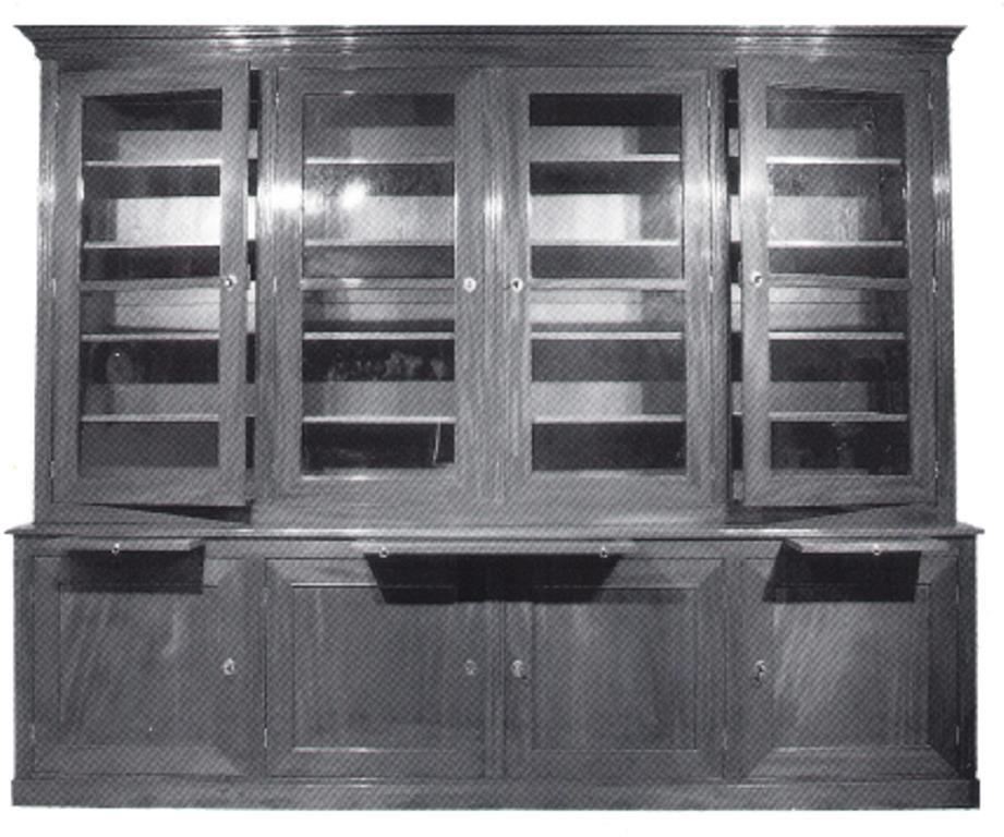 BIBLIOTHÈQUE à deux corps en acajou, ouvrant à quatre portes...