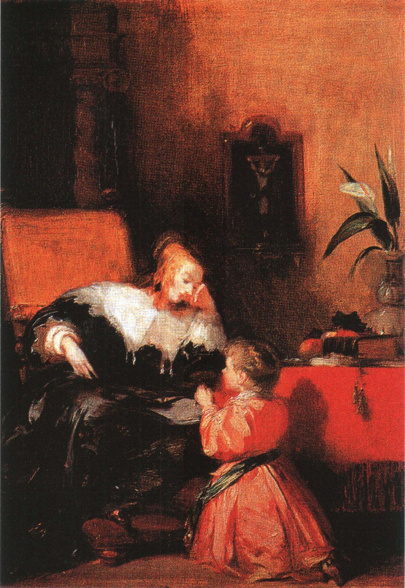 Richard Parkes Bonington a consacré une partie de son œuvre à l'histoire de France, et il a choisi ici de représenter un moment d'intimité entre Anne d'Autriche et son fils, le futur Louis XIV.