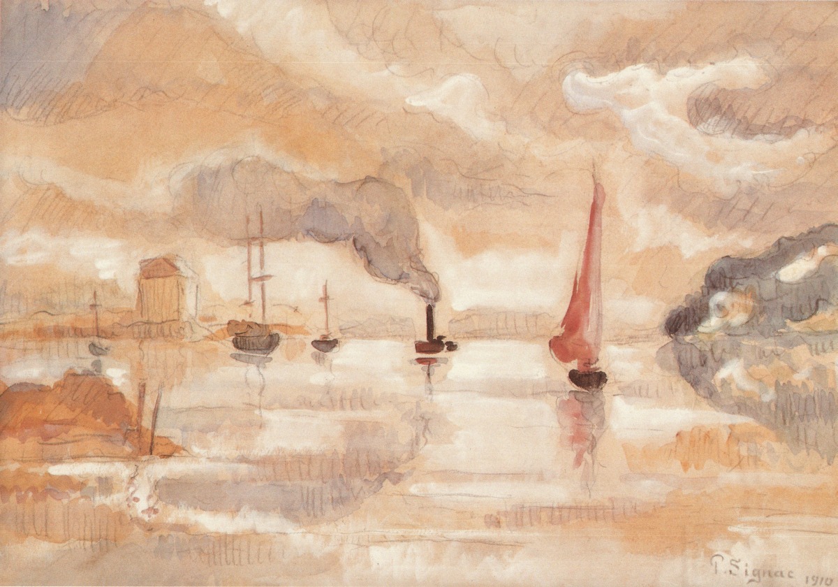 Paul SIGNAC (1863-1935). Bateaux dans le port.