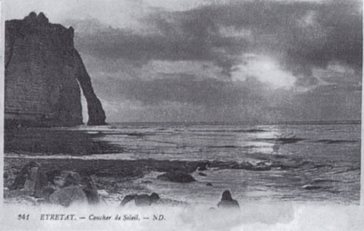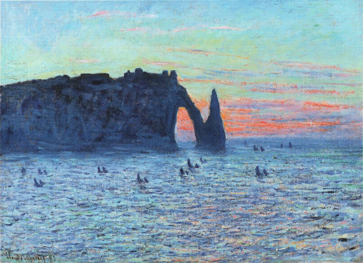 ― « Étretat, soleil couchant », huile sur toile, 55 × 81 cm, signée et datée en bas à gauche, 1883, North Carolina Museum ofArt, Raleigh (N° Inv. 67.24.1);