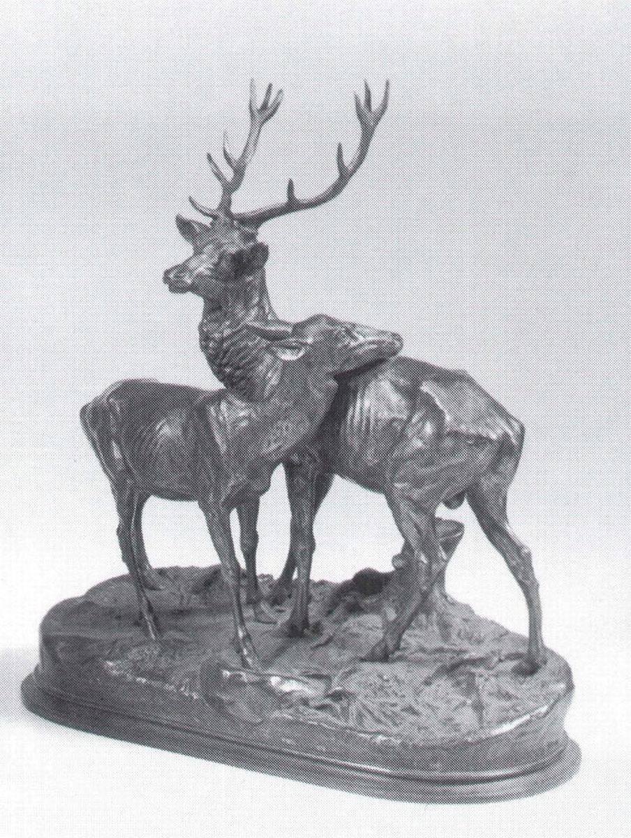 DUBUCAND Alfred (1828-1894). L'accolade, biche ct cerf. Bronze à patine mordorée. Signé sur la terrasse.