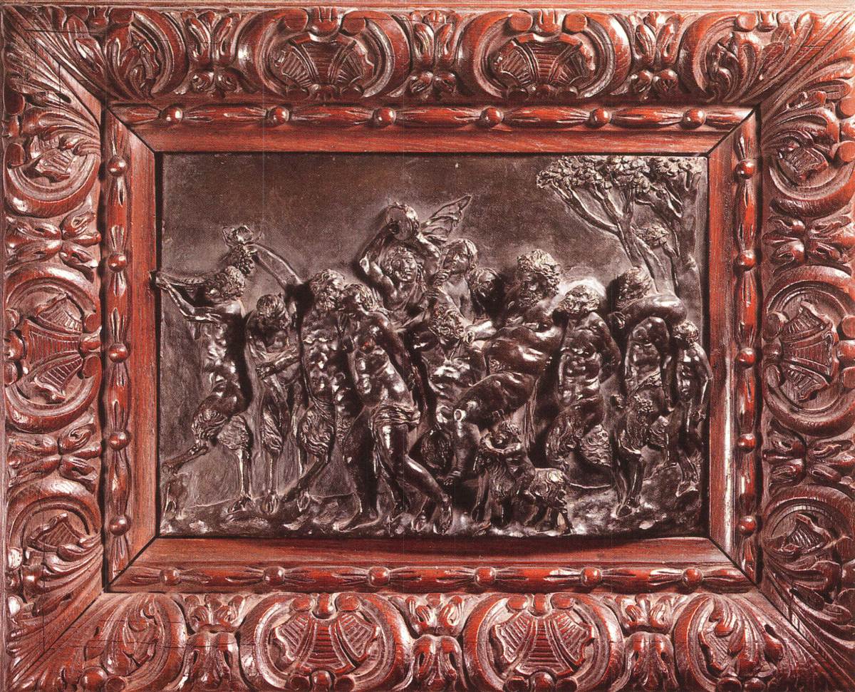Plaque de bronze à décor en ronde-bosse, d'une bacchanale animée de 13 sujets.