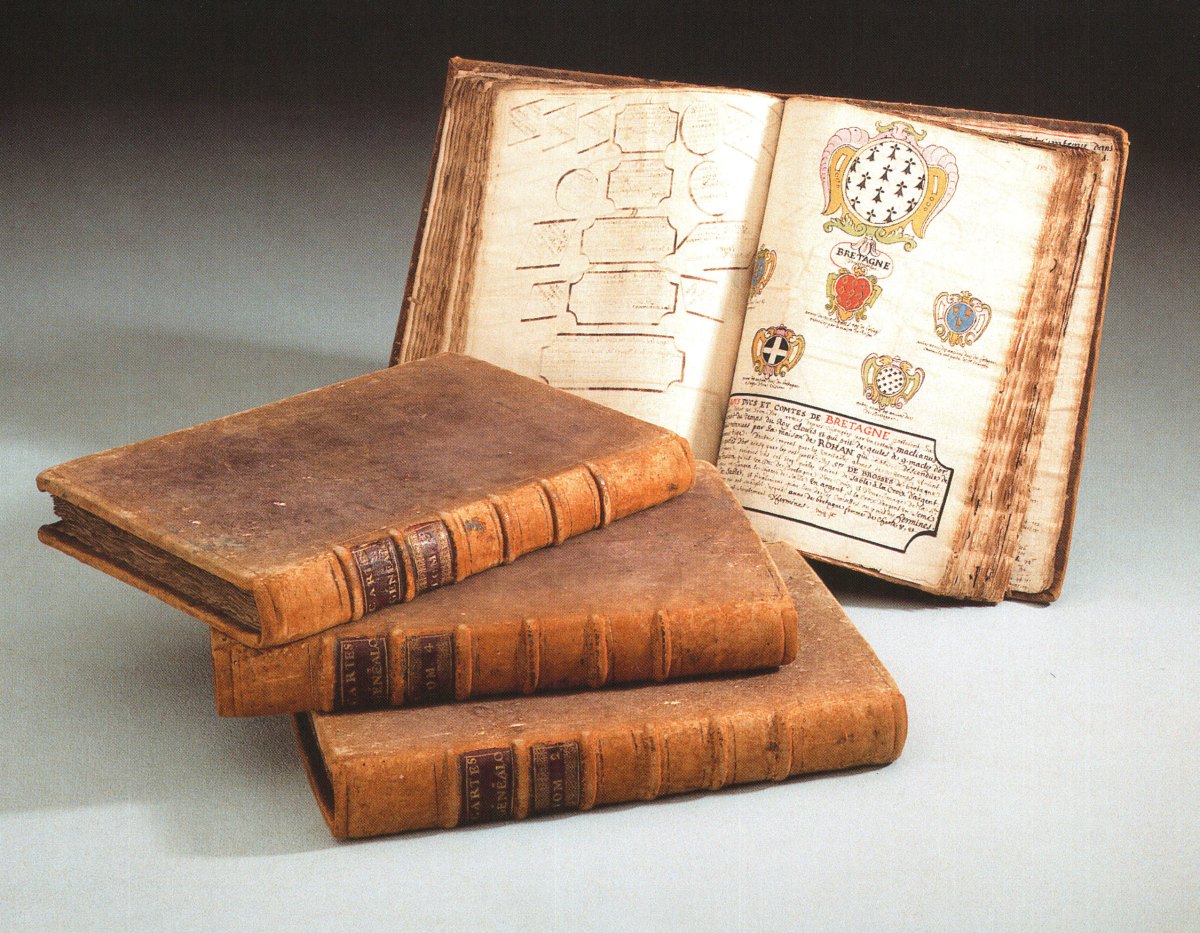 – plus de 300 blasons coloriés (encre, aquarelle, gouache) dont 294 achevés, de divers formats.