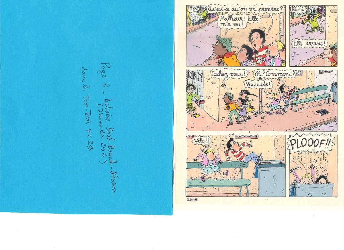 Planche originale dessinée par Bernadette Després, gouachée par Catherine Vianson Ponté et scénarisée par Jacqueline Cohen et Évelyne Reber publiée à la page 8 de l'histoire "Boul Boul Pahraon", dans l'album "Tom Tom n°9" et dans le "J'aime Lire" n°296.