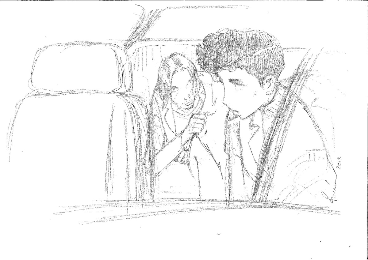 Deux croquis noir et blanc tiré de l'album publié chez Futuropolis.