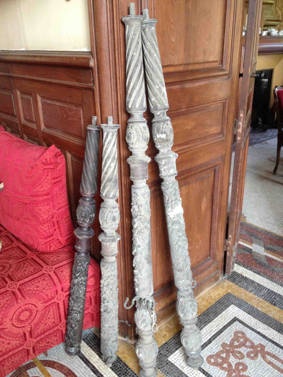 QUATRE ÉLÉMENTS colonnes de lit à baldaquins.