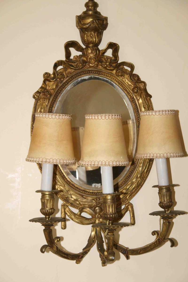 PAIRE d'APPLIQUES à trois lumière et miroir.