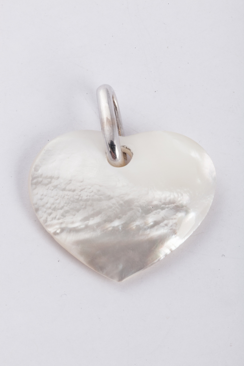 PENDENTIF coeur en nacre, la bélière en or gris.