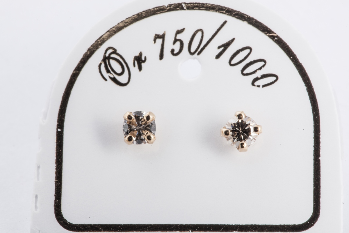 Paire de BOUTONS d'OREILLE en or jaune, sertie d'un petit diamant rond de taille brillant.