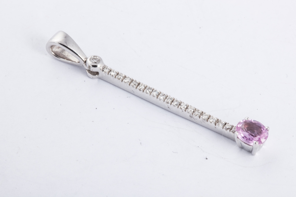 PENDENTIFen or gris, serti d'un saphir rose surmonté d'une ligne de petits brillants.