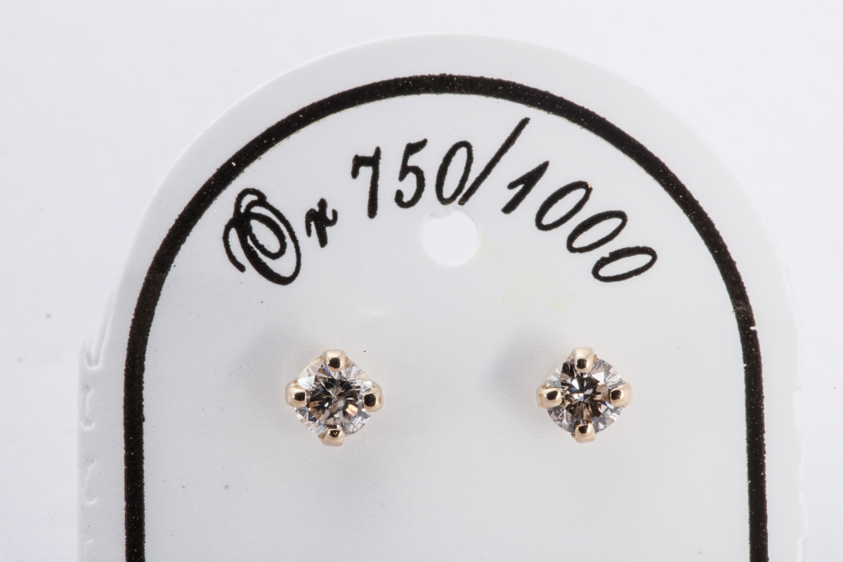 Paire de BOUTONS d'OREILLE en or jaune, sertie d'un diamant rond de taille brillant.