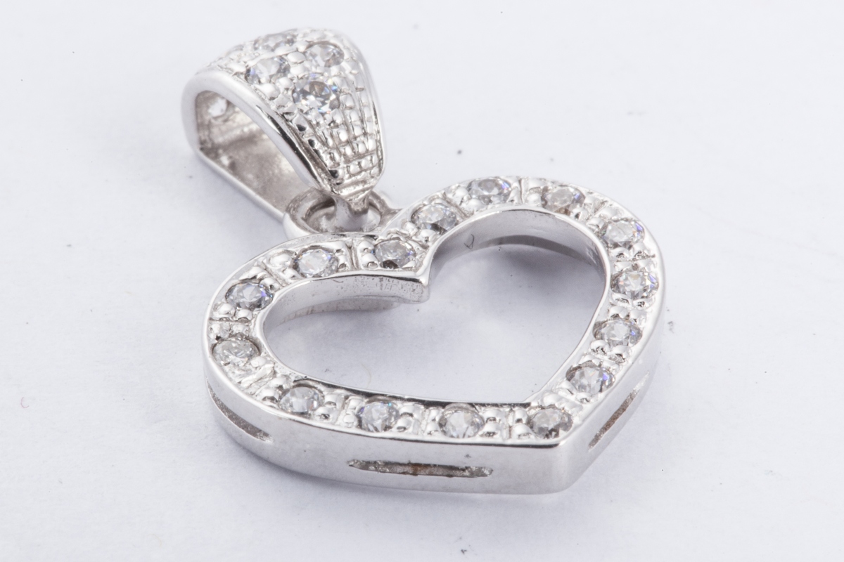 PENDENTIF coeur en or gris ajouré, serti de pierres de synthèse.