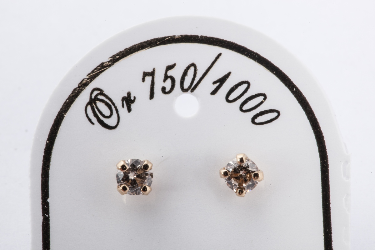 Paire de BOUTONS d'OREILLE en or jaune, sertie d'un petit diamant rond de taille brillant.