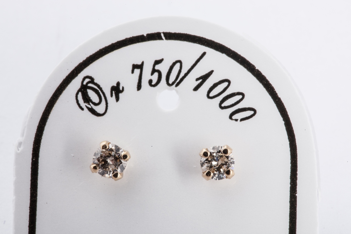 Paire de BOUTONS d'OREILLE en or jaune, chacun serti d'un diamant de taille brillant.