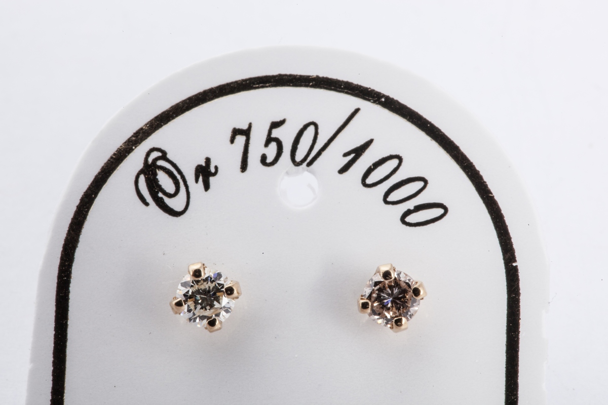 Paire de BOUTONS d'OREILLE en or jaune, sertie d'un diamant rond de taille brillant.