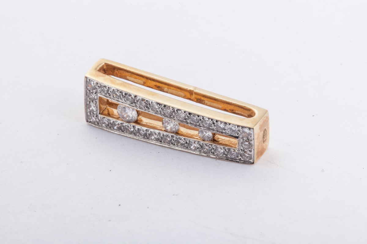 PENDENTIF en or jaune rectangulaire ajouré, serti de brillants.Poids brut...