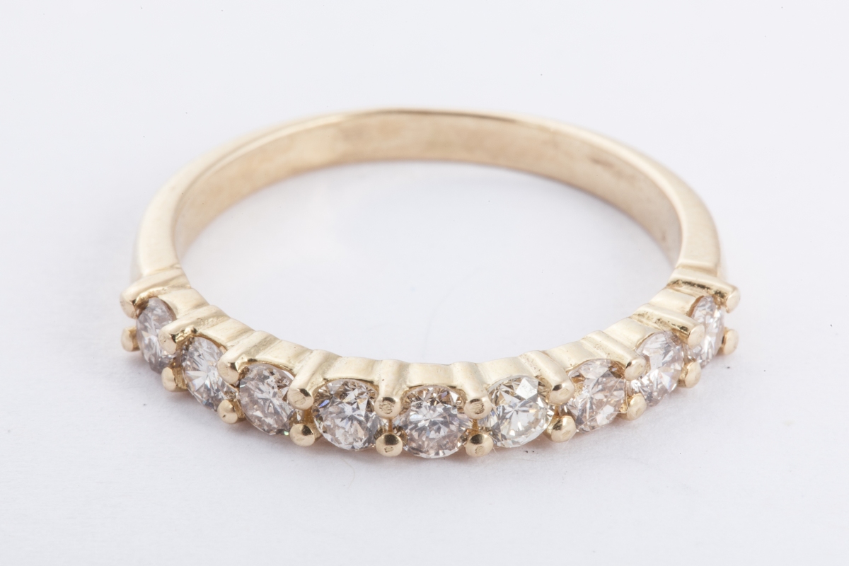 BAGUE en or jaune, sertie d'une ligne de petits diamants de taille brillant.