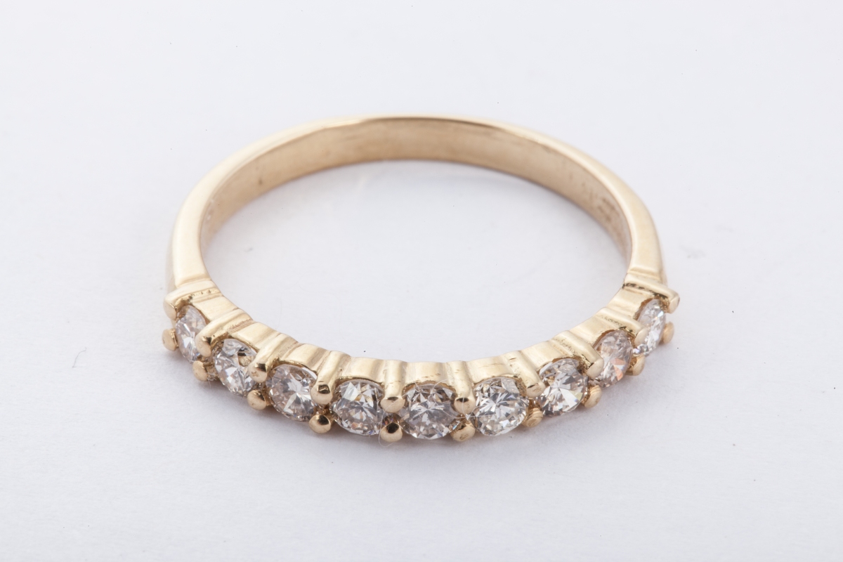 Bague rivière en or jaune, sertie d'une ligne de petits brillants.