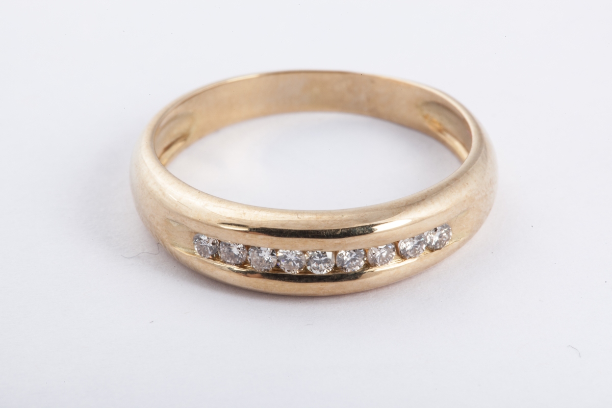 BAGUE rivière en or jaune sertie de neuf diamants ronds.