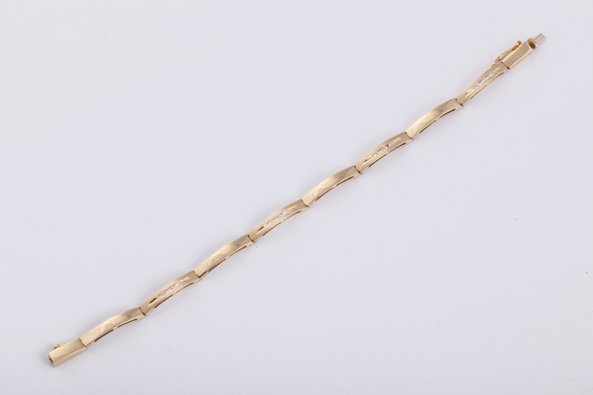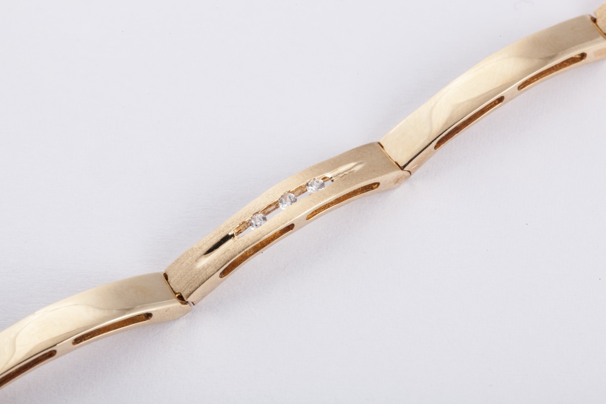 BRACELET articulé en or jaune, partiellement serti de pierres de synthèse blanches.