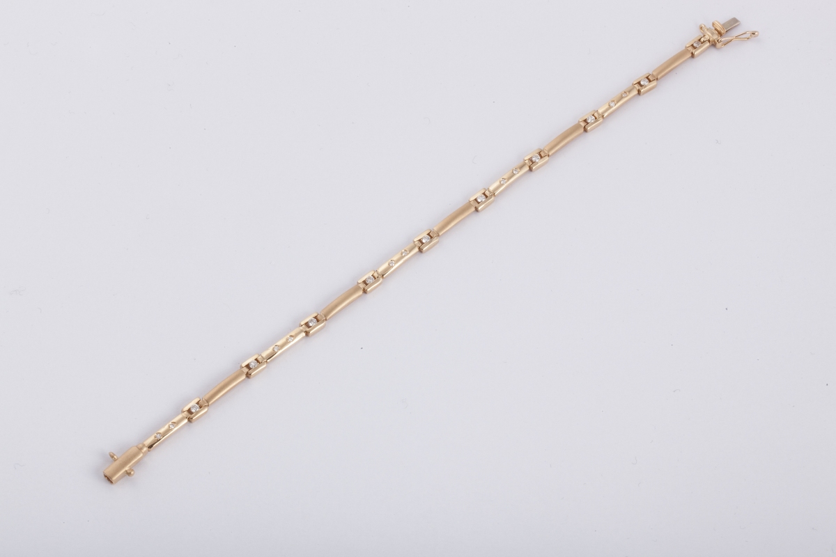 BRACELET articulé en or jaune partiellement serti de diamants.