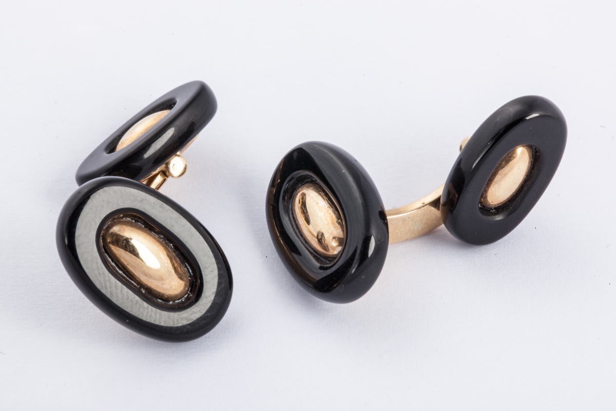 Paire de BOUTONS de MANCHETTE en or jaune et onyx.