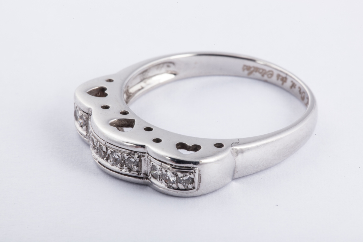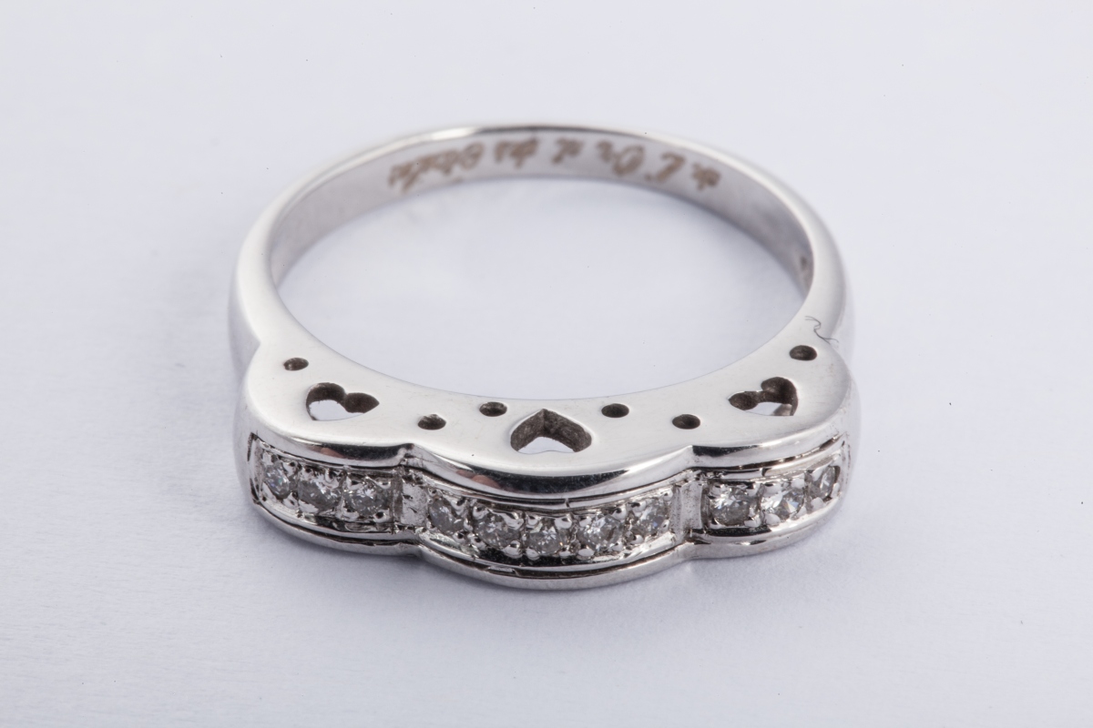 BAGUE en or gris, sertie d'une ligne de onze brillants.