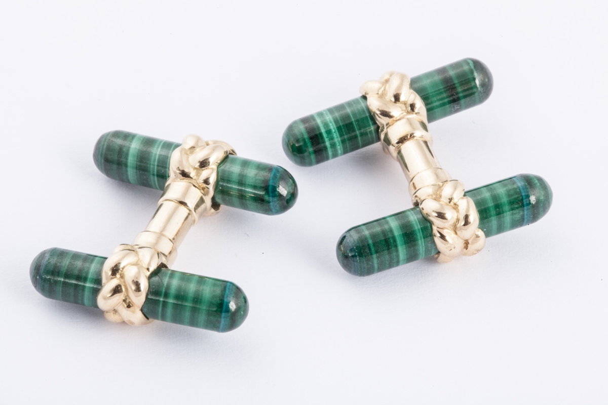 Paire de BOUTONS de MANCHETTE en or jaune, ornée de bâtonnets de malachite.