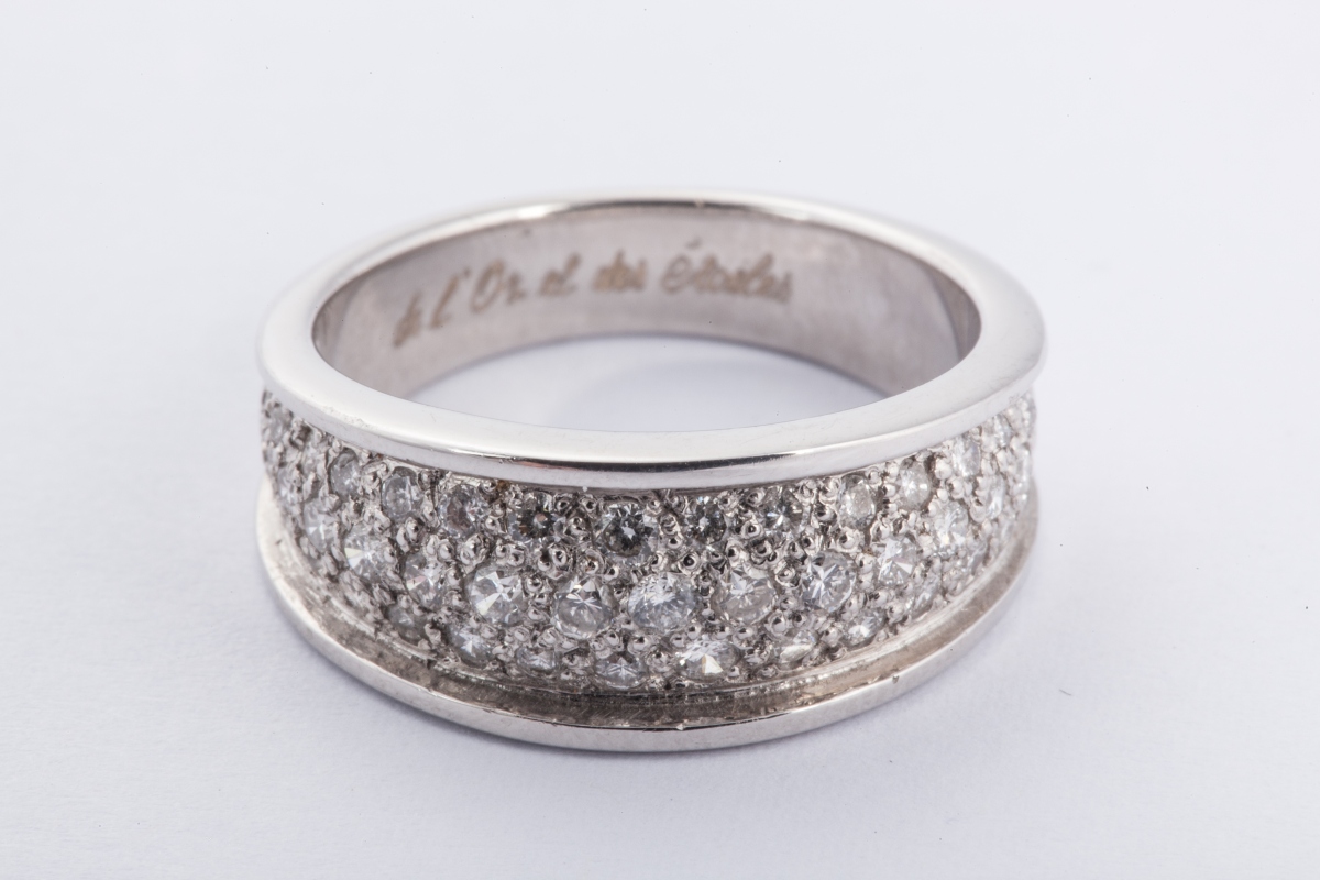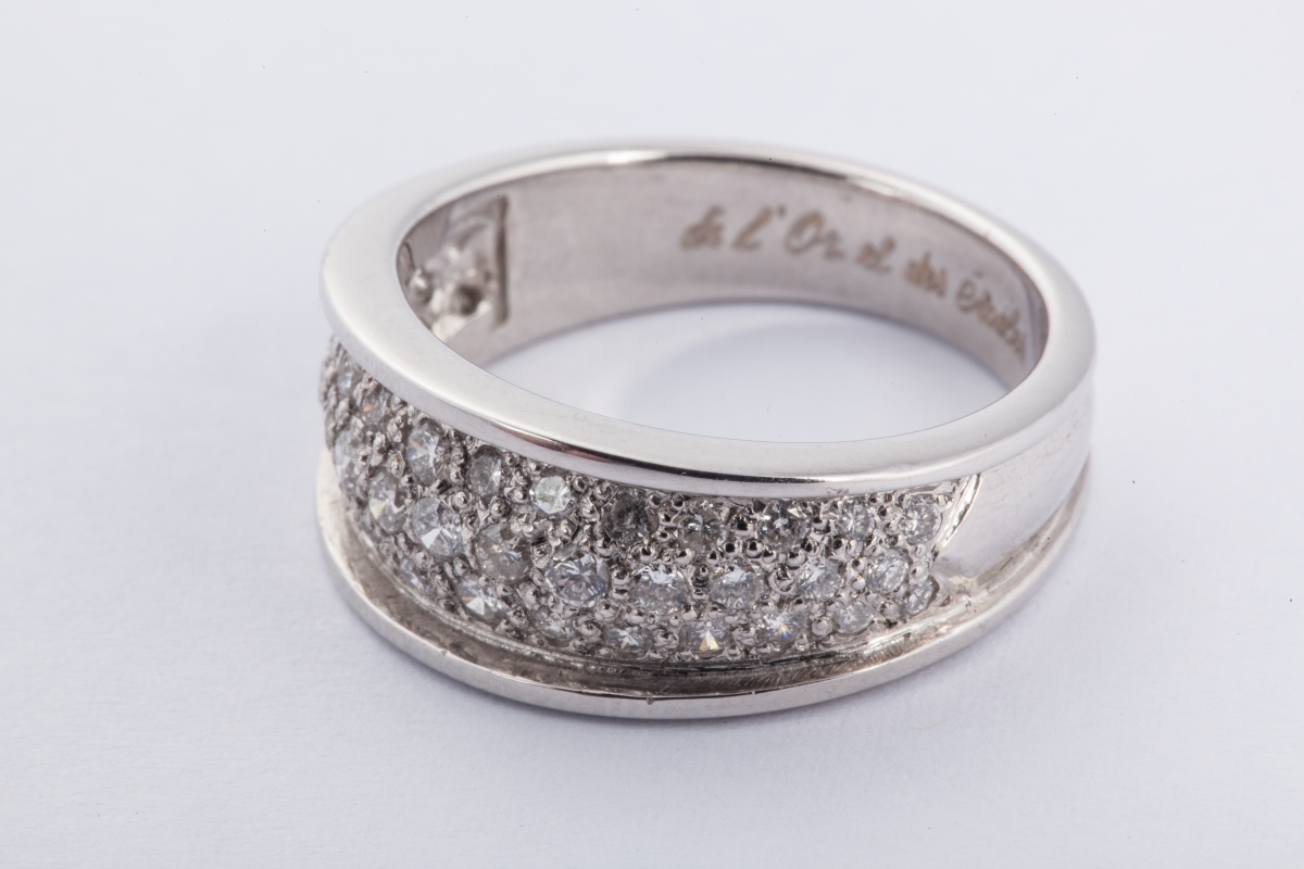 BAGUE en or gris, ornée d'un pavage de petits brillants.