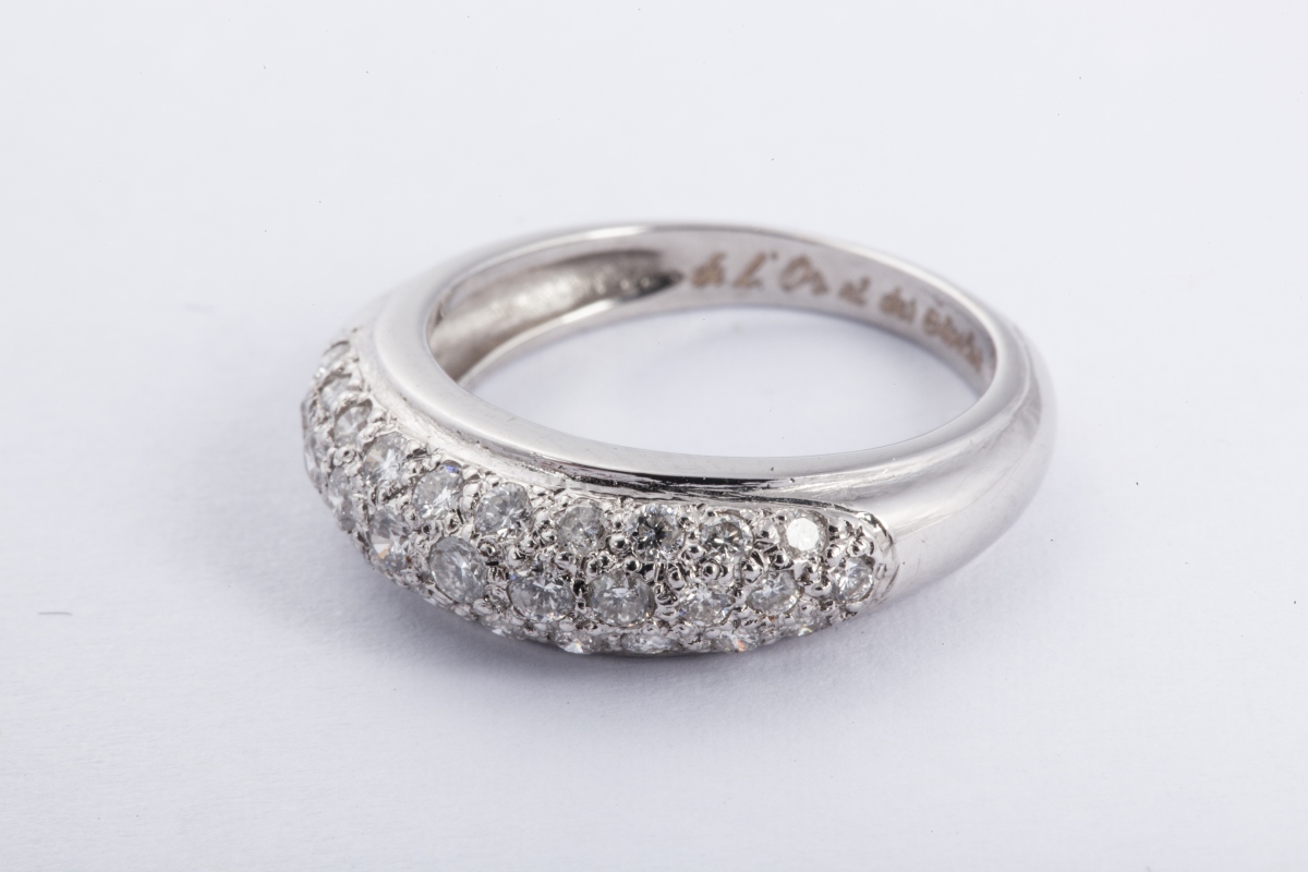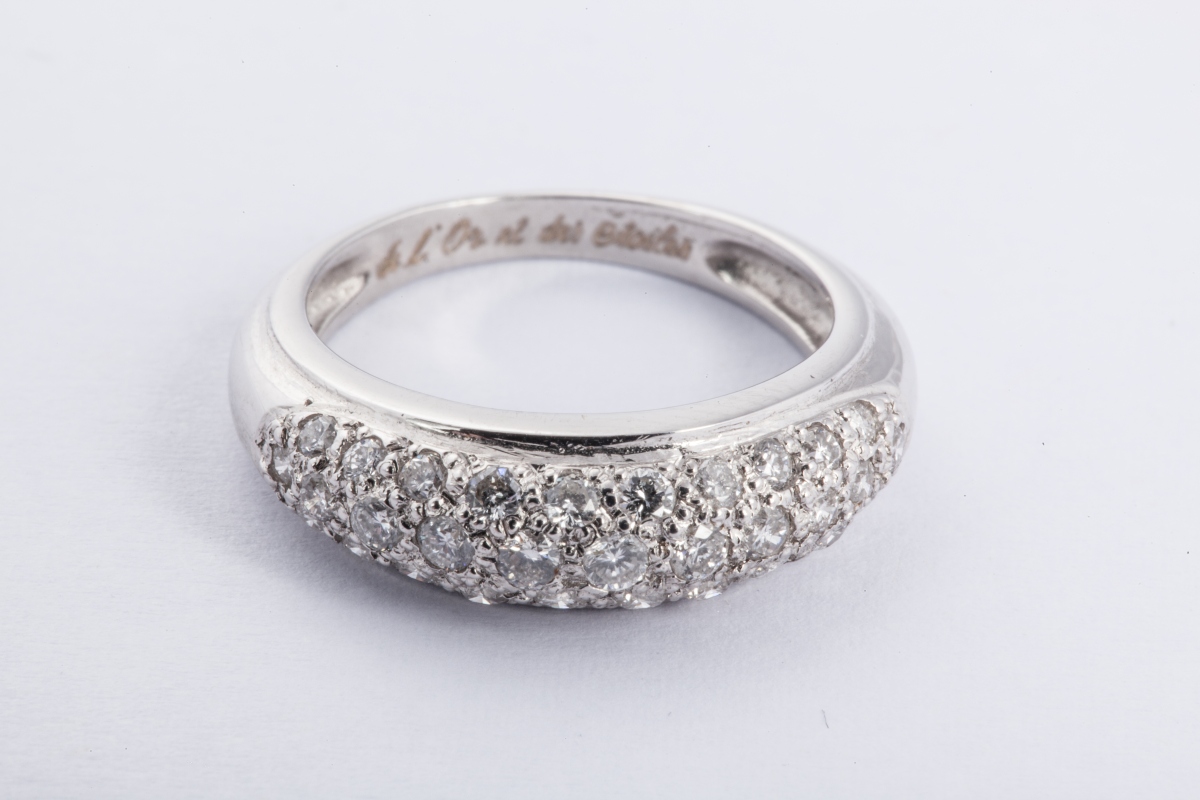 BAGUE en or gris, ornée d'un pavage de brillants. TDD...