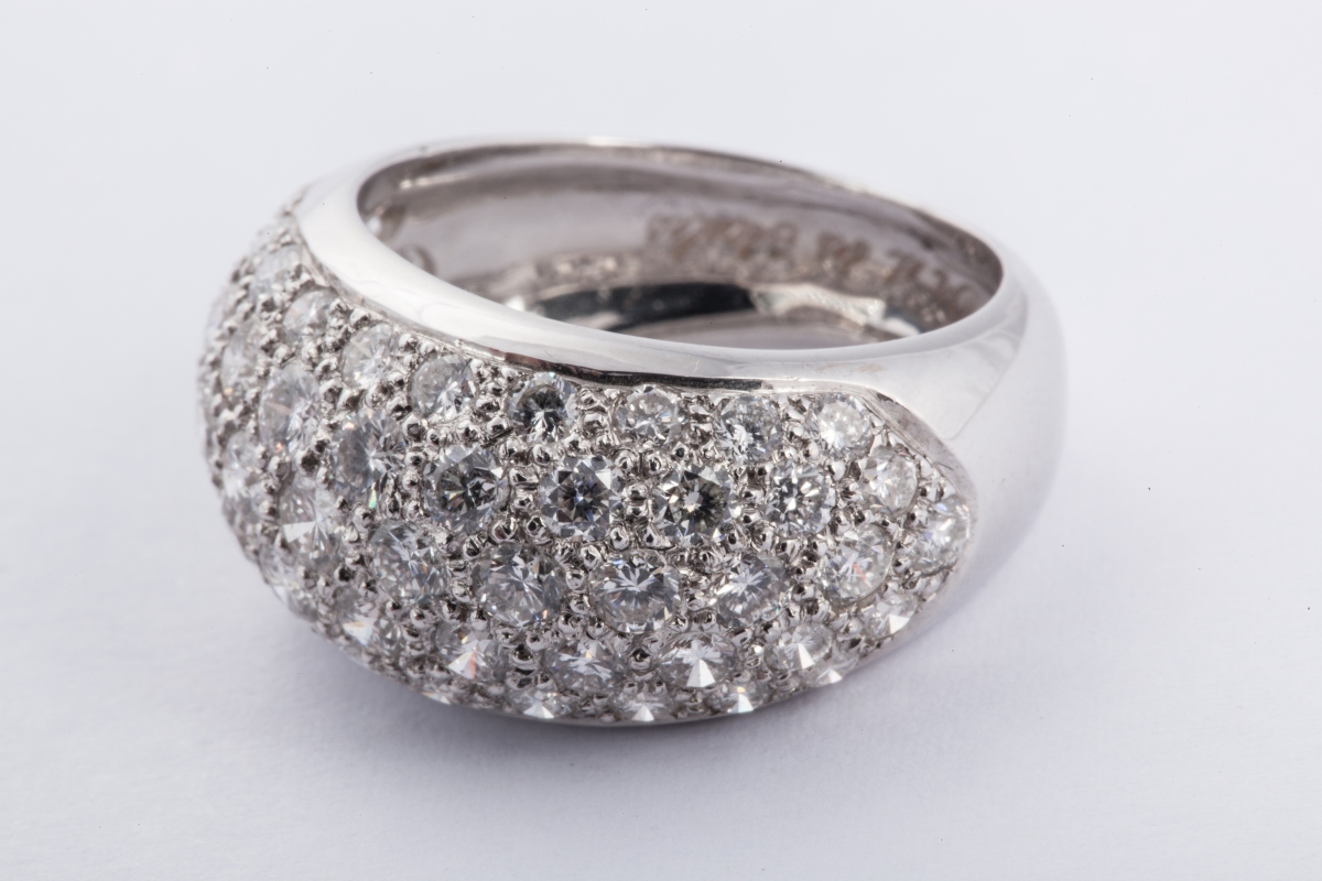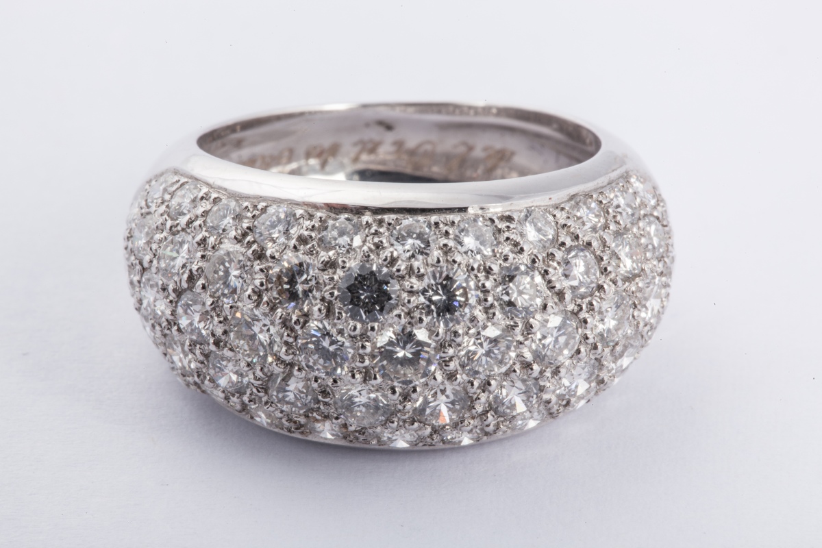 BAGUE bandeau en or gris, ornée d'un pavage de petits brillants.