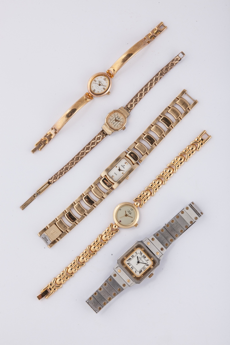 Lot de CINQ MONTRES bracelets de dame, en métal.