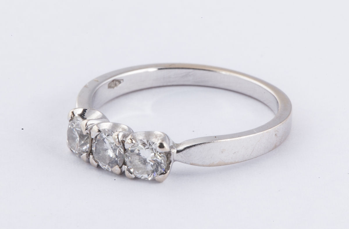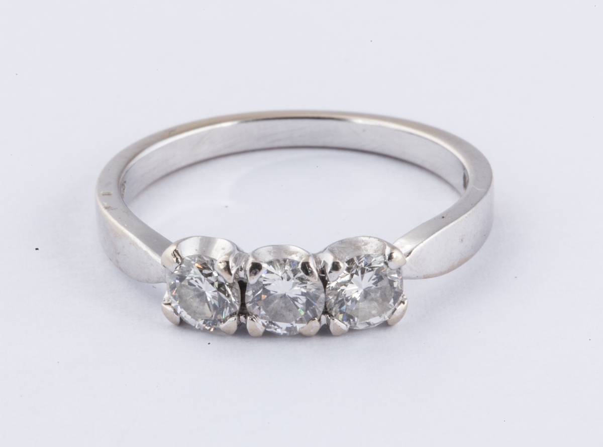 BAGUE en or gris, sertie de trois brillants. Poids brut...