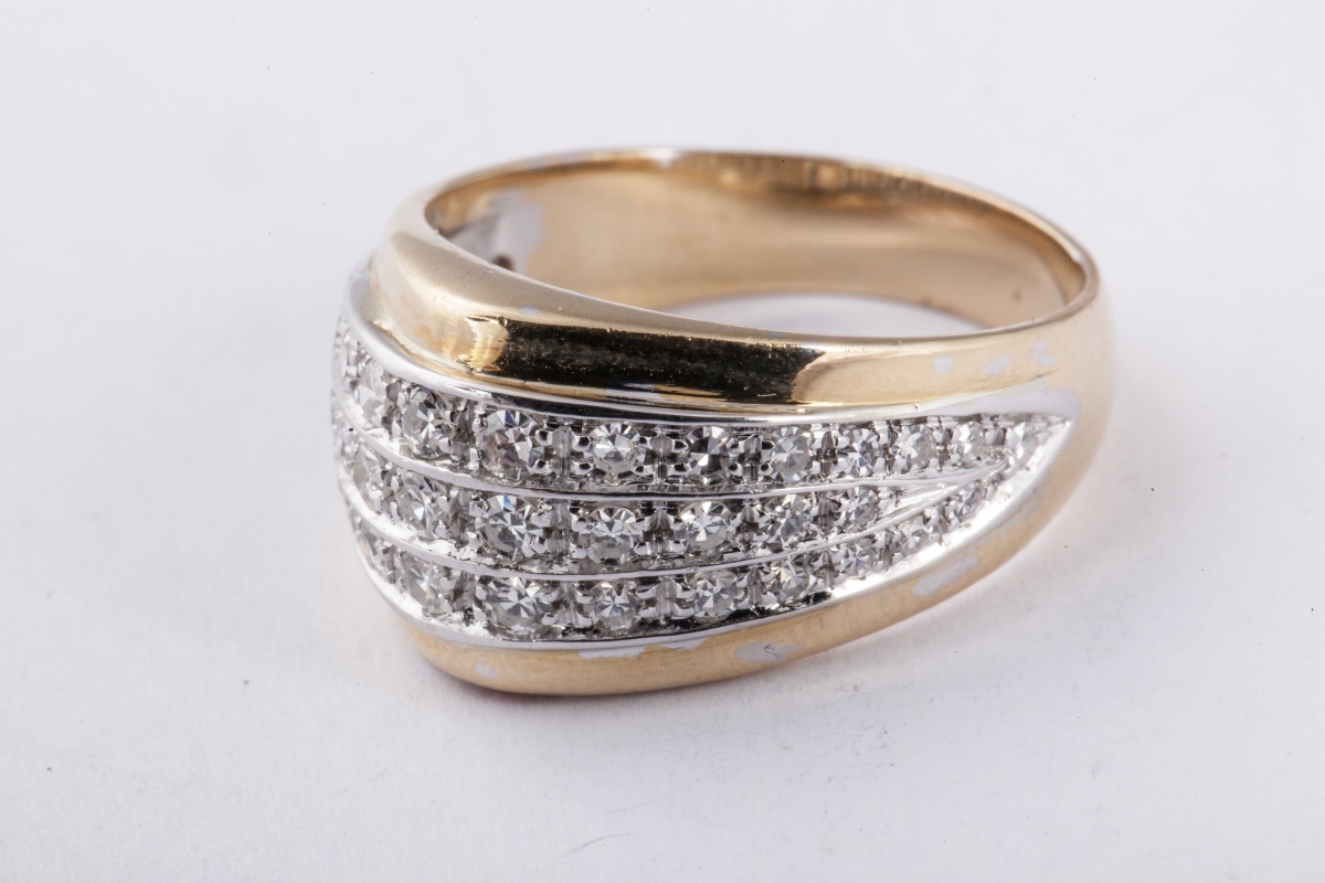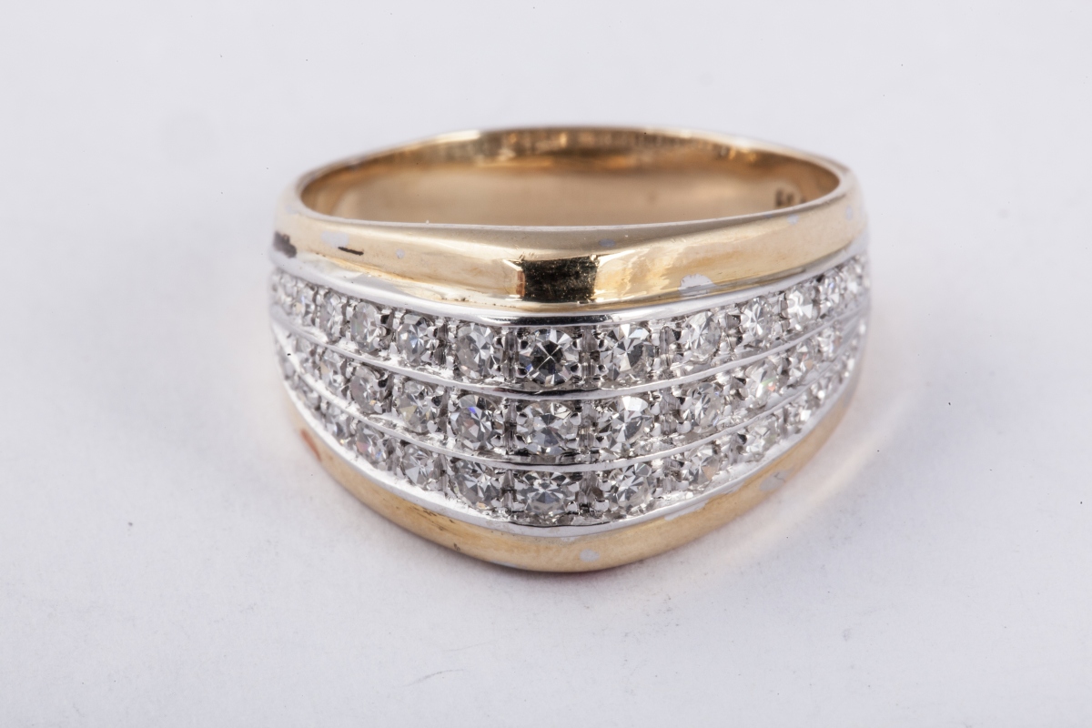 BAGUE en or jaune, ornée d'un pavage de diamants taillés en huit-huit.