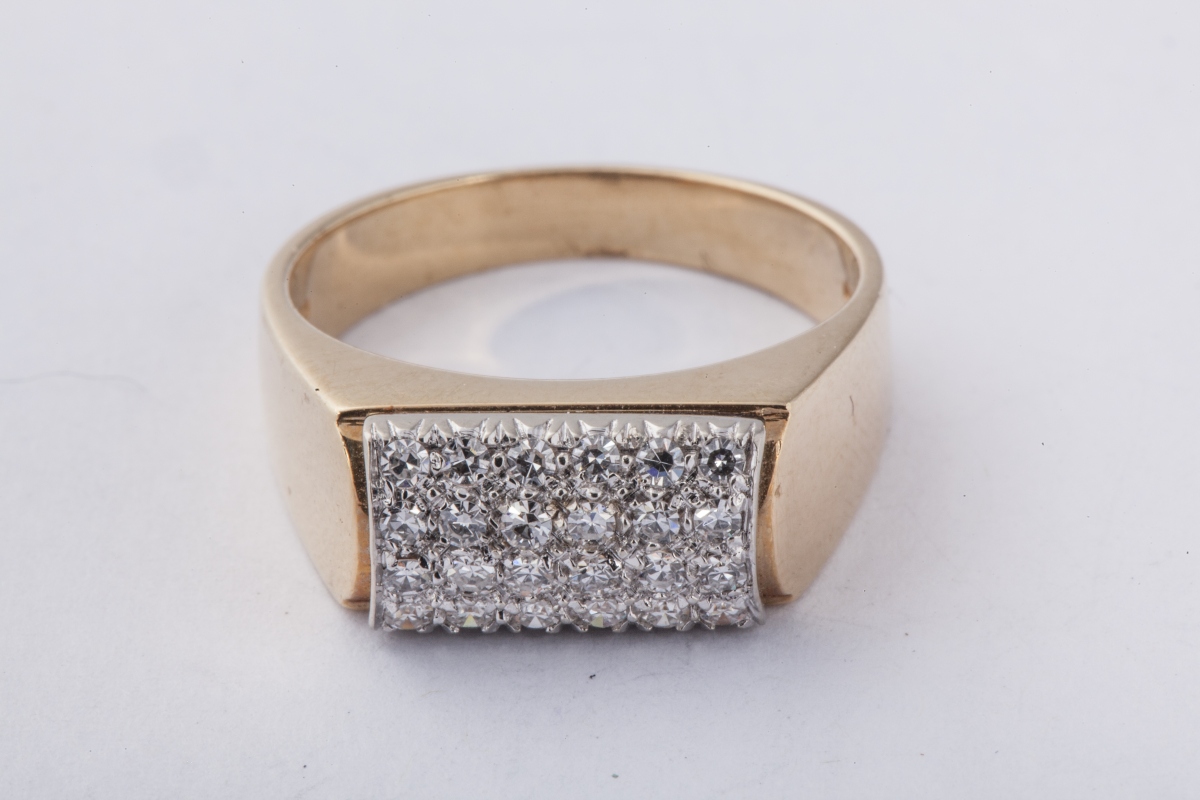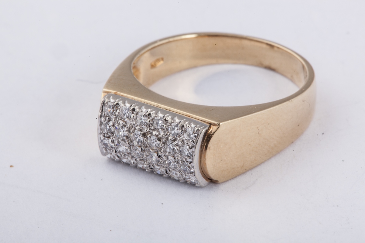 BAGUE en or jaune, ornée d'un pavage de diamants taillés en huit-huit.