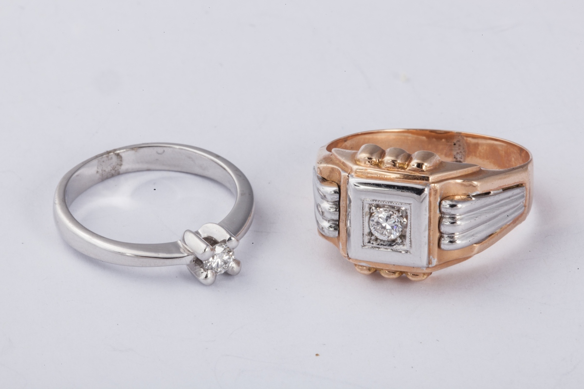Lot de DEUX BAGUES en or, l'une partiellement godronnée, chacune sertie d'un brillant.