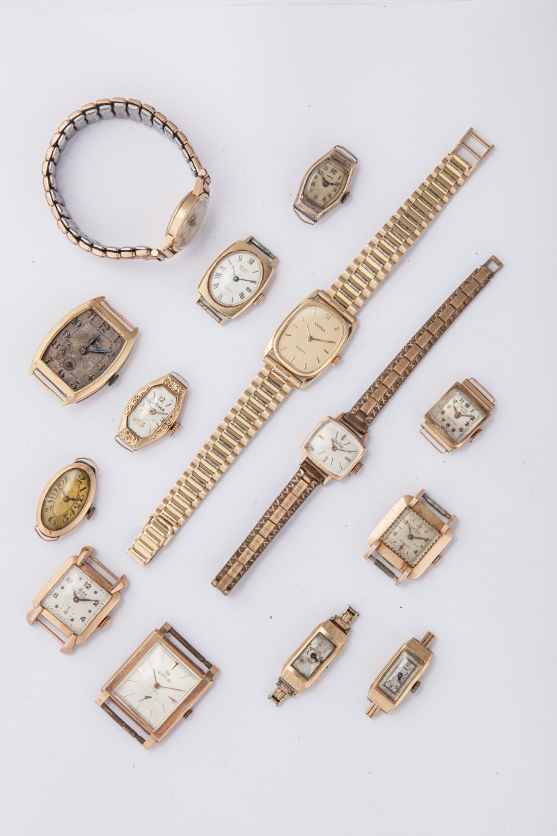 Lot de QUINZE MONTRES en or, dont quatre avec bracelet...