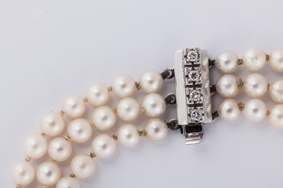 COLLIER trois rangs de soixante-quinze, soixante-dix neuf et quatre-vingt six...